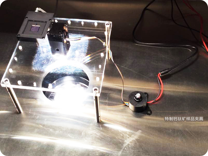 可以在手套箱内进行样品的气密封装;方便样品的装载和卸除;样品的电极可与测试模块的引出电极方便可靠的连接;通过开关进行不同子单位样品电极的切换;透光玻璃窗口可以方便测试光照射样品;透光玻璃窗口的透过率经过校准。